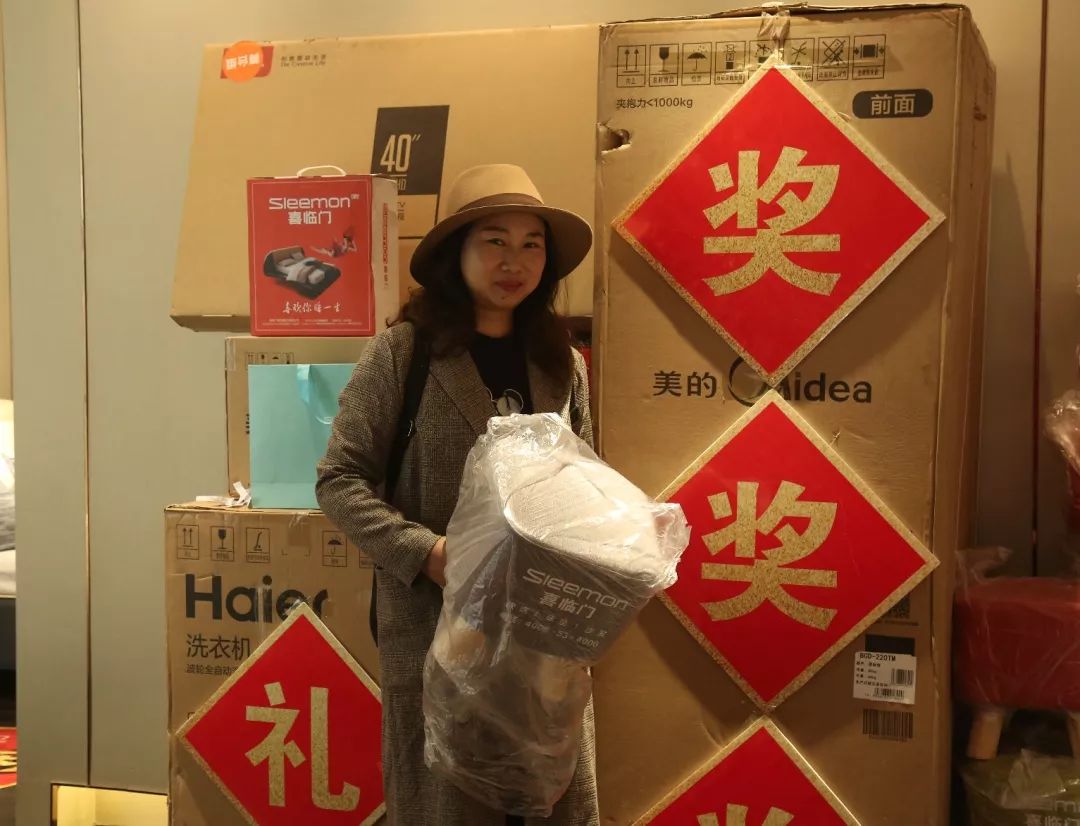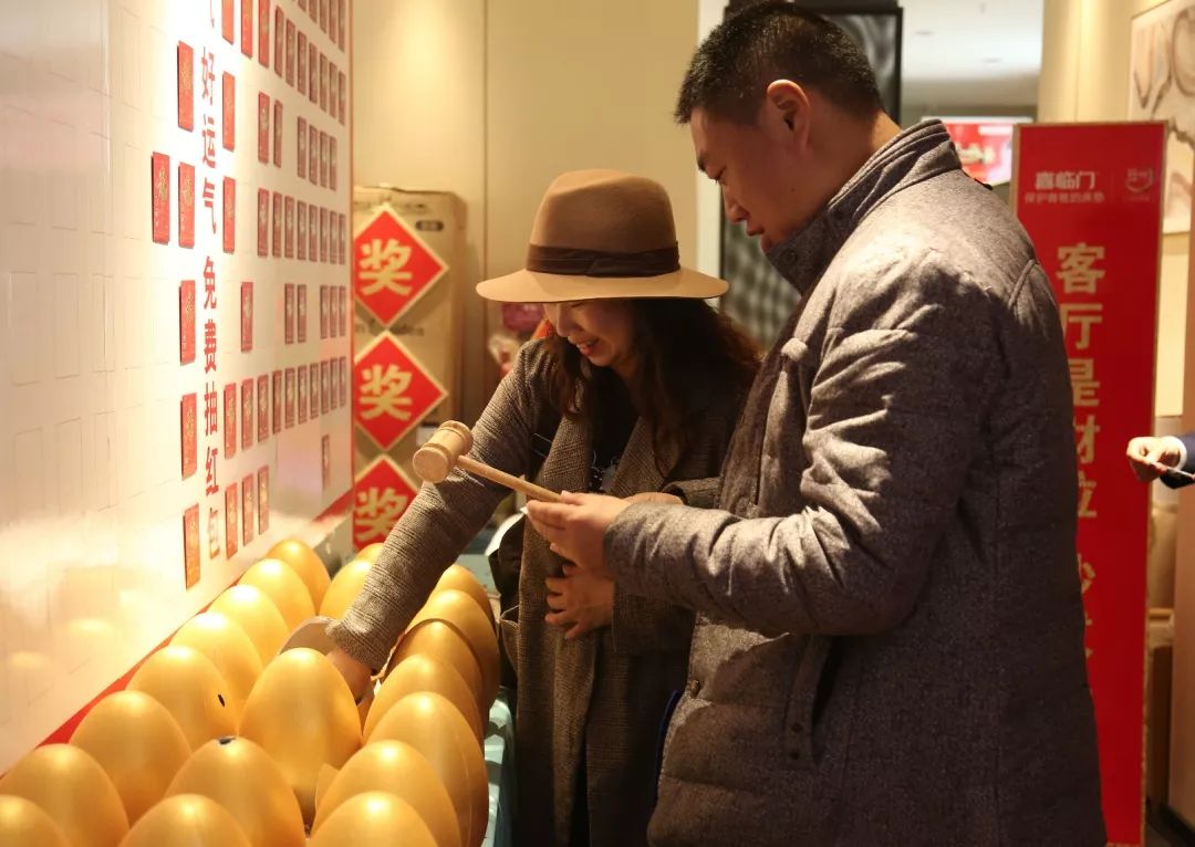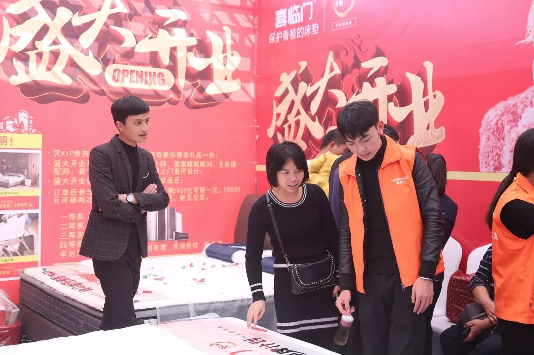 为回馈广大消费者对喜临门开业的关注与支持,开业现场推出了送礼券、砸金蛋、抽大奖等惠民活动,众多消费者亲临喜临门展厅体验和抢购。温岚也参与到抽奖活动中,为现场观众抽取4999元的免单大奖,引爆热销狂潮。