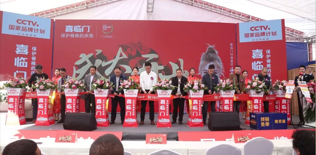 大商汇运营部经理钱钢先生、喜临门家具股份有限公司综合管理部总监兼分销事业部总监陈雷先生、喜临门家具股份有限公司西南大区总经理陈礼先生、喜临门昆明营销中心总经理段兴卫先生、云南省定制家居行业协会秘书长杨世堂先生、昆明市建筑装饰材料行业协会会长李江先生、昆明市建筑装饰行业协会会长郑斌先生、云南省工商联会员处副处长高鹏先生、阿里巴巴集团汇川平台总监/改革开放四十年-云南经济推动力品牌评委付佳先生,9位嘉宾携手同台,共同为喜临门大商汇旗舰店开业剪彩,花团锦簇,擂鼓镇镇,掌声不绝,喜临门重磅开业,开启了云南家居建材行业的又一新篇章!