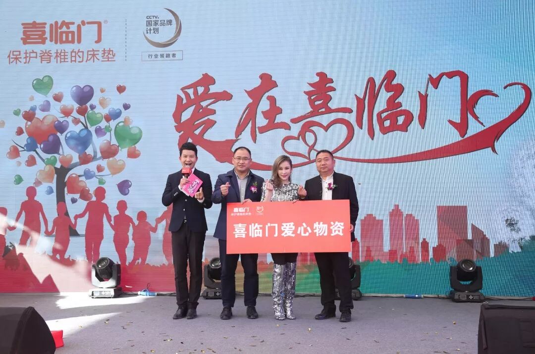 “爱在喜临门”公益活动也得到温岚的鼎力支持与关注,并在现场举行了喜临门爱心物资捐赠仪式。