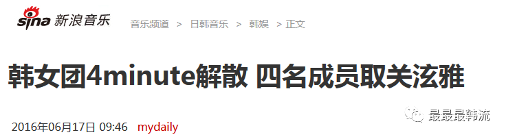 然而2016年6月,4MINUTE正式解散了。