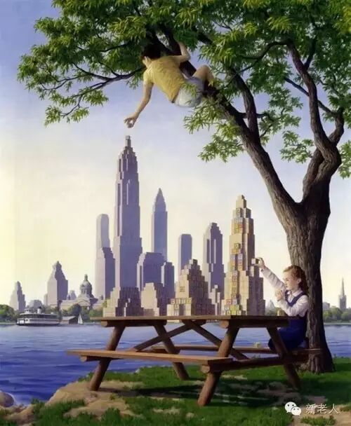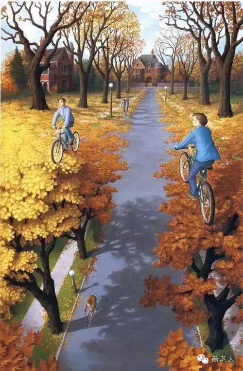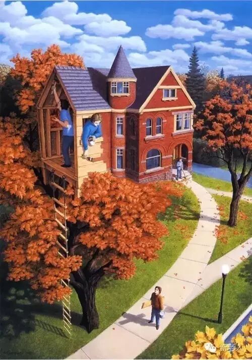 经典的视觉错乱图。房子到底是在树上还是在地上?