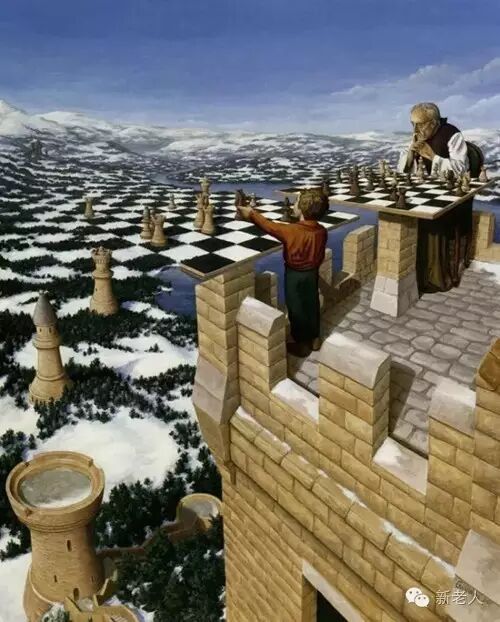 小朋友是在天上下棋,还是在楼顶上下棋?
