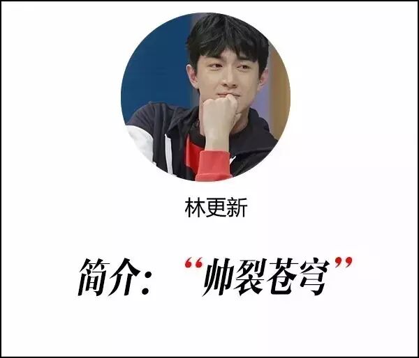林更新的颜值虽然很高,但永远追不上他的中二指数。他的微博简介写着“帅裂苍穹”,游戏网名是“九亿少女的梦”,时时刻刻都在提醒别人:快看我的脸!