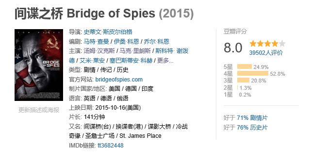 虽然《间谍之桥》口碑票房都不错。