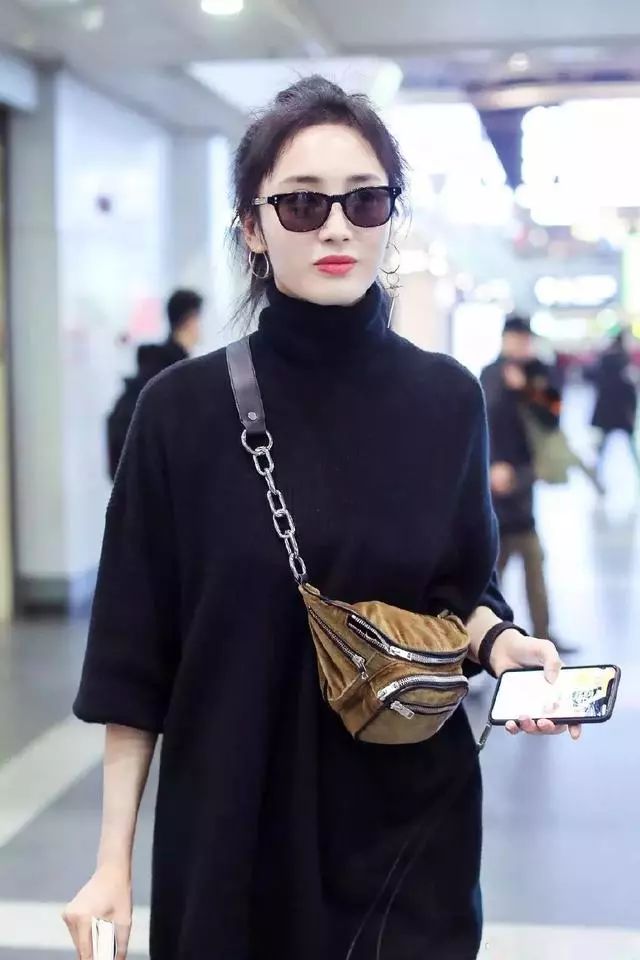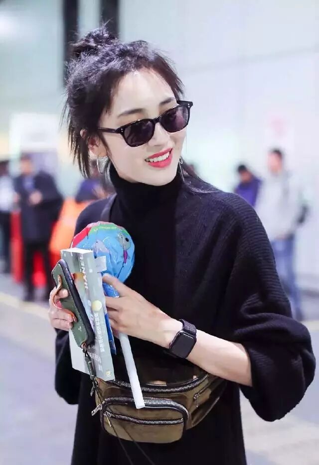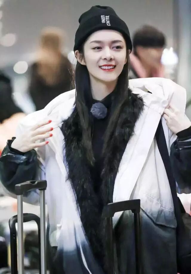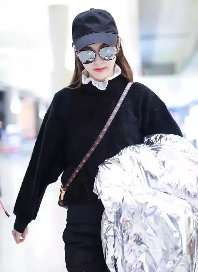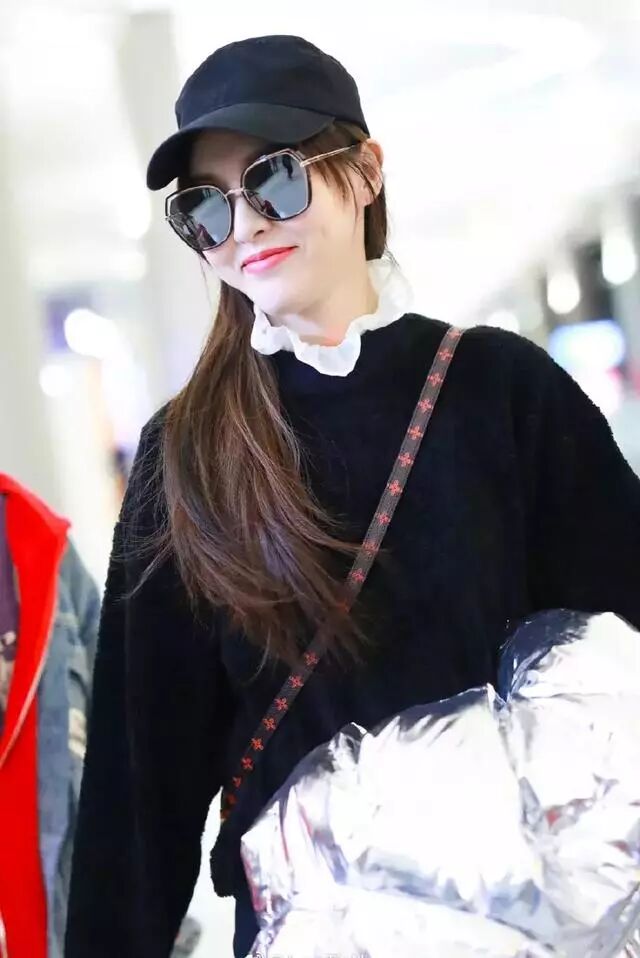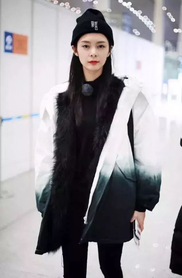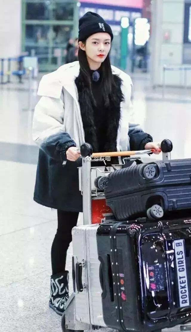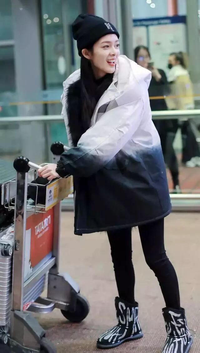 钟楚曦一身黑色look现身机场,这个羽绒服有点厉害~