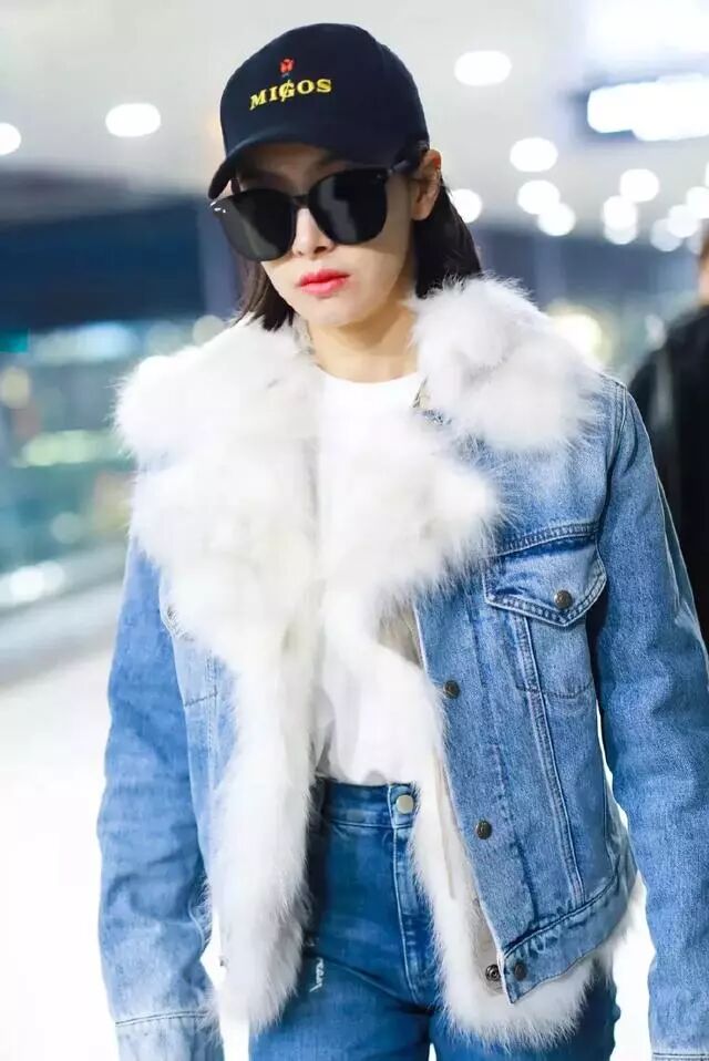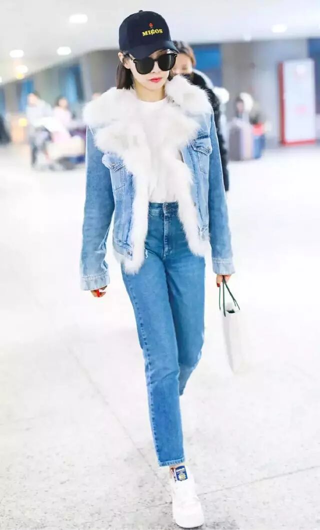 宋茜现身机场。一改以往酷帅style的你茜,今天穿上了软乎乎的翻毛领牛仔外套,看上去温暖又可爱。搭配简单的牛仔裤和小白鞋,随性大方。