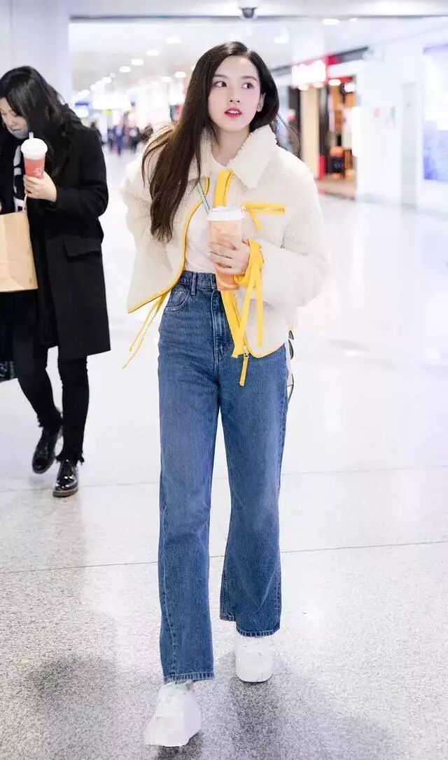 宋祖儿现身上海机场,她身穿白色羊羔毛外套,搭配白色针织衫和牛仔阔腿裤,外套上亮黄色点缀和嫩绿色小包,都让整个造型少女感十足~