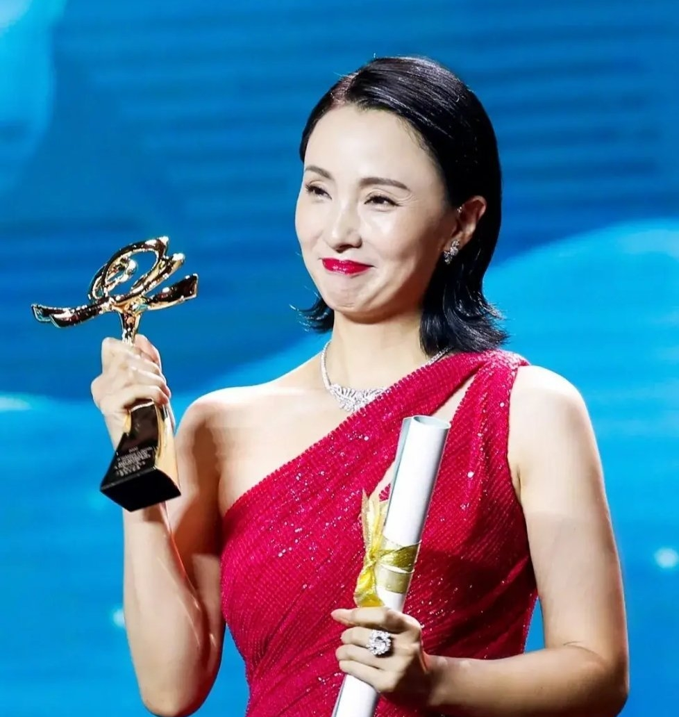 拿了这个奖后,她还成为国内唯一的拿遍电影、电视六大奖项的女演员。在台上的她笑靥如花,一脸自信从容。