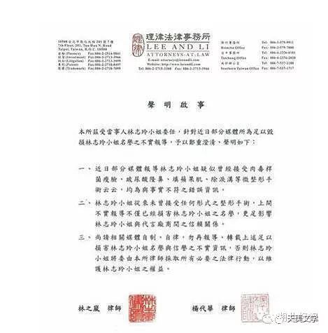关于女神林志玲的整容传闻一直不绝于耳,尤其是她的胸部时大时小,为此,林志玲连续上传了私人医师和律师团队的两份“真的我,真的鼻,真的眼,真的胸,真的心,不会也不需要整形。”