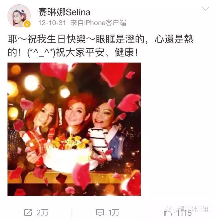 除了对S的热情很少给予同等的回应,从2012年开始,Selina的生日都是与Hebe、Ella两个好姐妹一同度过,不见阿中的身影。