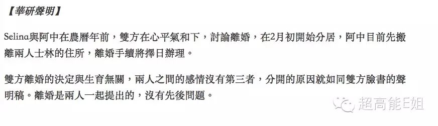 台媒根据“圈中人”的说法,给出了离婚的四大原因: