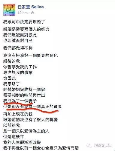 而早在婚前访问和出书时已流露出“不爱”的张承中,从Selina的脸书中也看得出很多“冷漠”的细节。