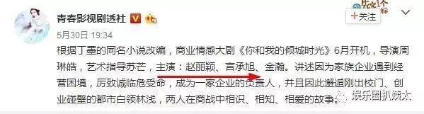 吴亦凡、张若昀、言承旭都曾成为疑似男主角。