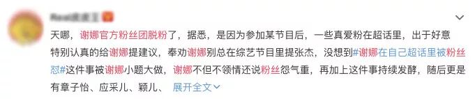 紧接着更大的热搜来了:谢娜官方粉丝团脱粉了。