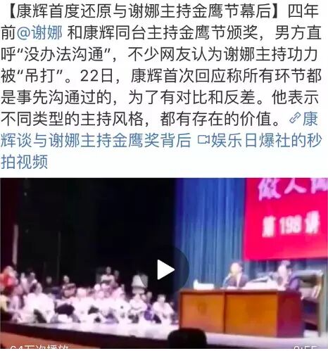 就像四年前谢娜一度被人诟病的“金鹰节车祸现场”,和康辉同台,她被央视名嘴吊打,主持地乱七八糟,整个人活成了全网的笑话。