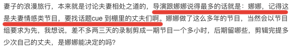 《妻子的浪漫旅行》的“秀恩爱”,是为了棚里棚外的节目串联,导演的特意安排:
