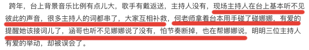 先是刚过去的湖南台跨年晚会,她主持串场期间“频繁抢话”被黑。