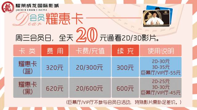 6月会员丨开卡、充值赠礼了!成龙设计室礼品献上~\(^o... 郑州耀莱成龙国际影城锦艺店 港台男星 2016-06-09 17:27:34 116 创作不易,用心坚持,欢迎请BaGua喝几杯爱心咖啡!打赏并支持本文 打赏并删除本文 6月福利到!会员开卡、充值赠礼活动献上助你嗨玩暑期档!↓↓↓会员活动一、开卡活动:1.蓝卡:成龙设计室礼品;2.黑卡:水星家纺休闲毯或设计室礼品;二、充值活动:(仅限再次续充)1.充值300元,赠送【成龙设计室】宝贝计划挂链或电影衍生品;2.充值500元,赠送背包1个(双肩或单肩);3.充值1000元,赠送【成龙设计室】品牌“十二生肖系列”抱枕1个;礼品内容以实际赠送为准。图片仅供参考,具体礼品以实物为准。 创作不易,用心坚持,欢迎请BaGua喝几杯爱心咖啡!打赏并支持本文 打赏并删除本文 感谢您的支持鼓励,我会继续努力的!文章地址:用户邮箱:打赏金额:USDT 请输入数字点击”去打赏“,即可进行打赏支持本文章哦 成龙 About the Author 郑州耀莱成龙国际影城锦艺店 功能介绍:分享最新电影资讯,影城每日影讯,优惠活动,免费看电影福利,还有精美衍生品相送! Related Posts 6月会员丨开卡、充值赠礼了!成龙设计室礼品献上~\(^o... 2016-06-09 17:27:34 发表评论