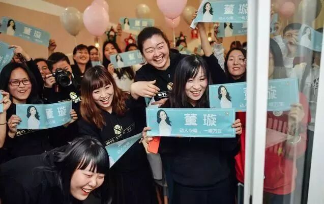 与粉丝们聚会中,她笑容满面。