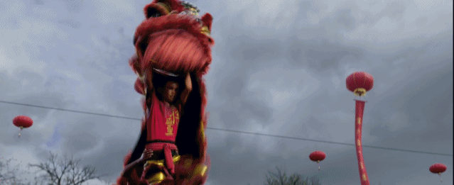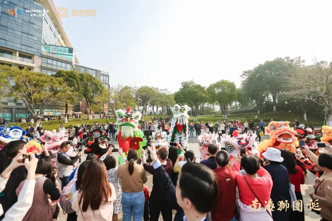 现场观看的市民游客纷纷拿起手机记录醒狮动态。