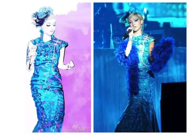 范晓萱作为摇滚乐的唱作人,竟然在北京演唱会的时候身穿一袭蓝色旗袍,头戴精致的配饰甚是出挑,配合着悠扬动感的《蓝旗袍》旋律尽情舞动,仿佛穿越到旧时的大上海歌舞升平。