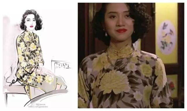 梅艳芳生前在电影《胭脂扣》中的旗袍造型尽显万种风情,时而素雅,时而艳丽,时而端庄,时而妩媚。