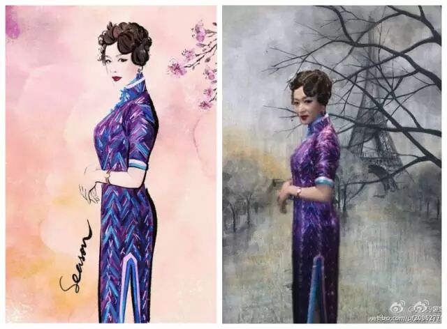 在中国,有不少女星在影视作品、重大活动中,留下了经典的旗袍造型,当这些经典的形象以手绘的方式展现,别有一番韵味。
