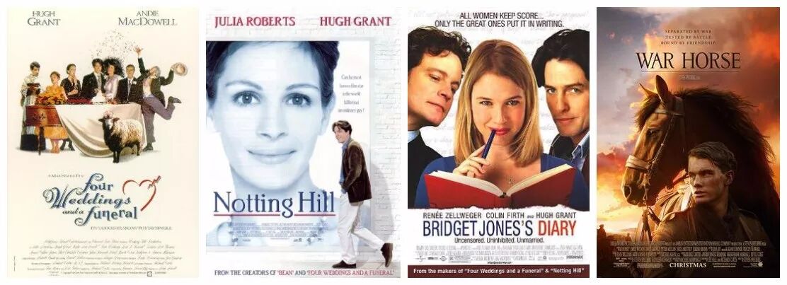 从左往右《四个婚礼和一个葬礼》、《诺丁山》、《BJ单身日记》、《战马》。
