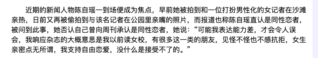 没过多久,她便在活动上否认自己曾经向某周刊承认是同性恋者,只是表达能力差才令人误会。