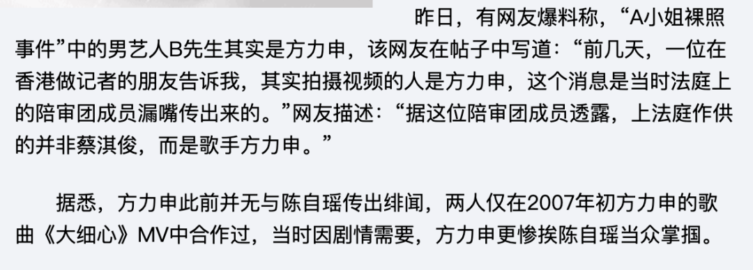 “A小姐”事件后来被爆出“内幕”,拍摄者疑似是方力申……