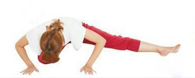 1、两手置于体前撑地,左腿横向伸直,脚尖同样伸直。慢慢将身体前倾,保持10秒。来回重复两次,然后换另一边腿重复动作。