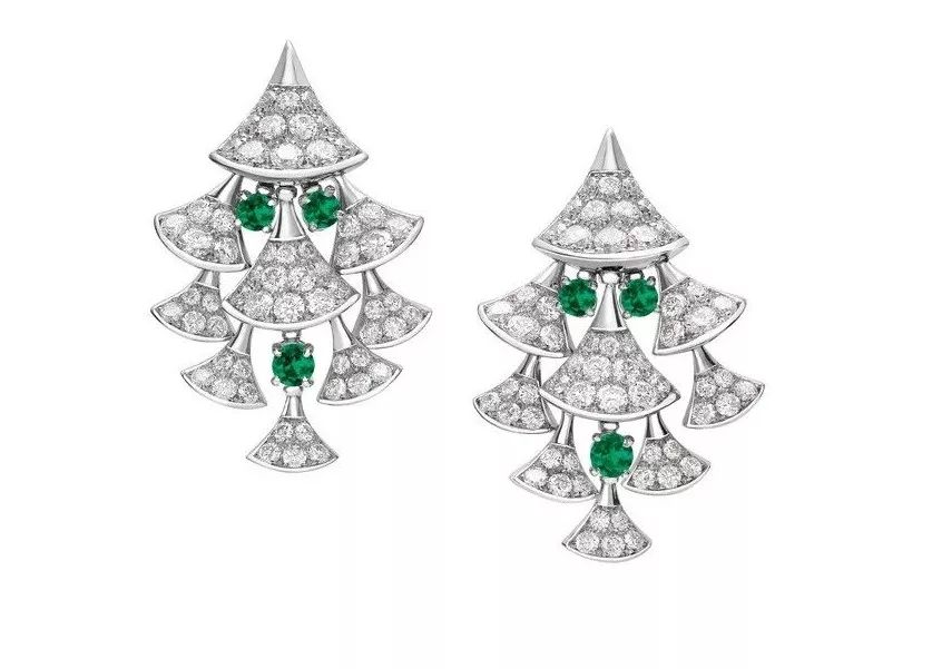 宝格丽Divas' Dream高级珠宝系列白色18K金镶祖母绿钻石耳环