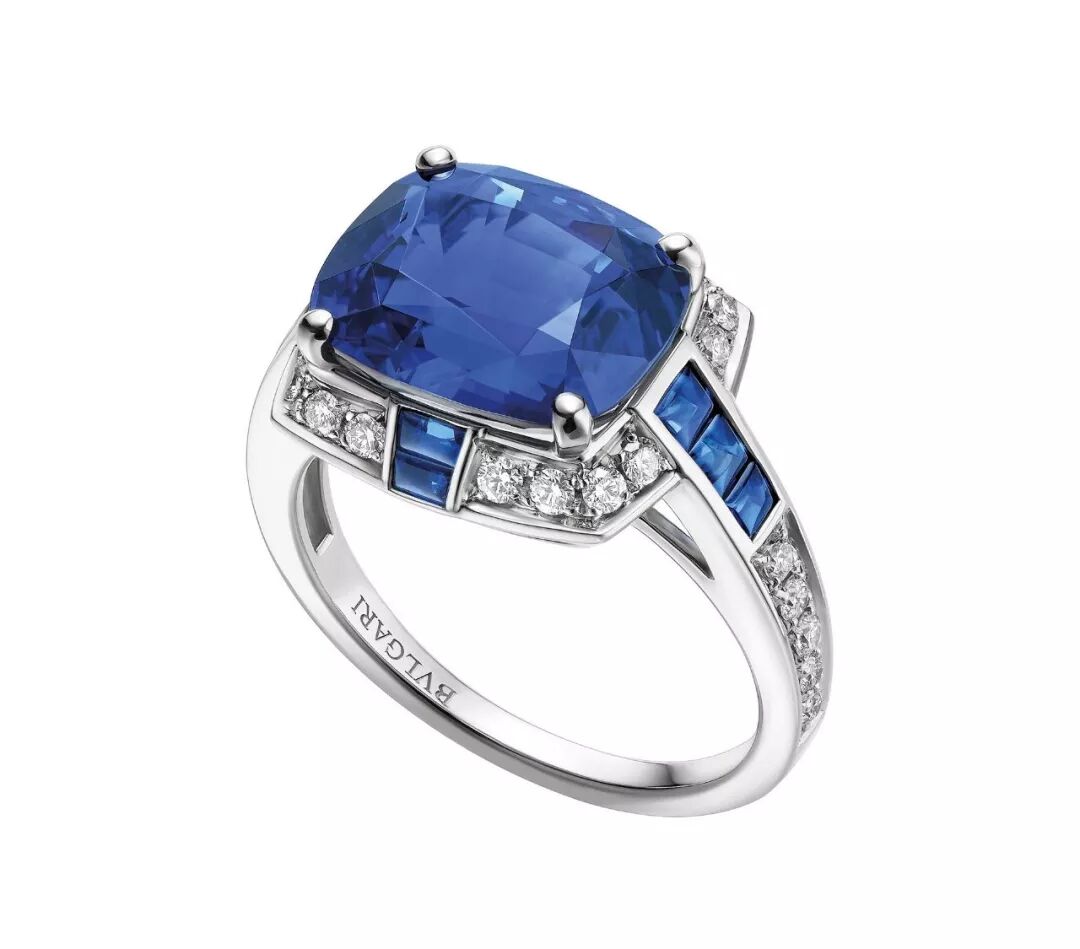 宝格丽高级珠宝系列铂金镶蓝宝石钻石戒指