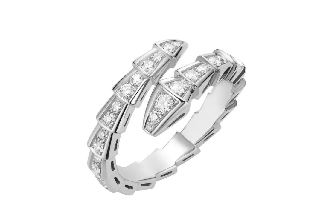 宝格丽Serpenti系列白色18K金镶钻石戒指