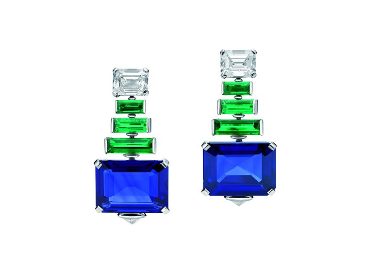 宝格丽高级珠宝系列镶祖母绿蓝宝石钻石耳环