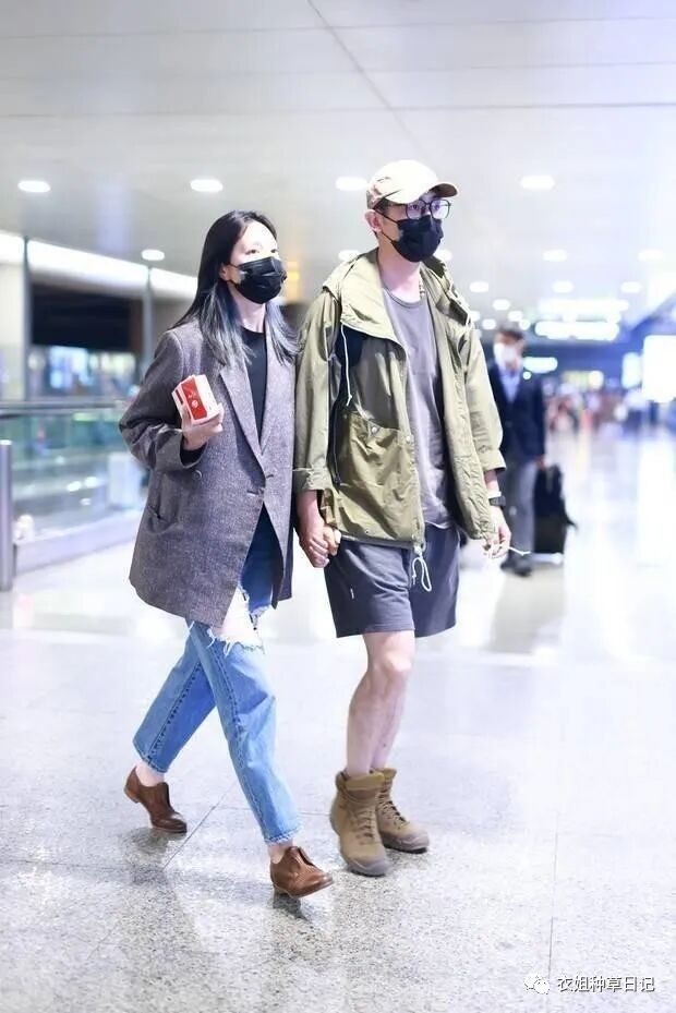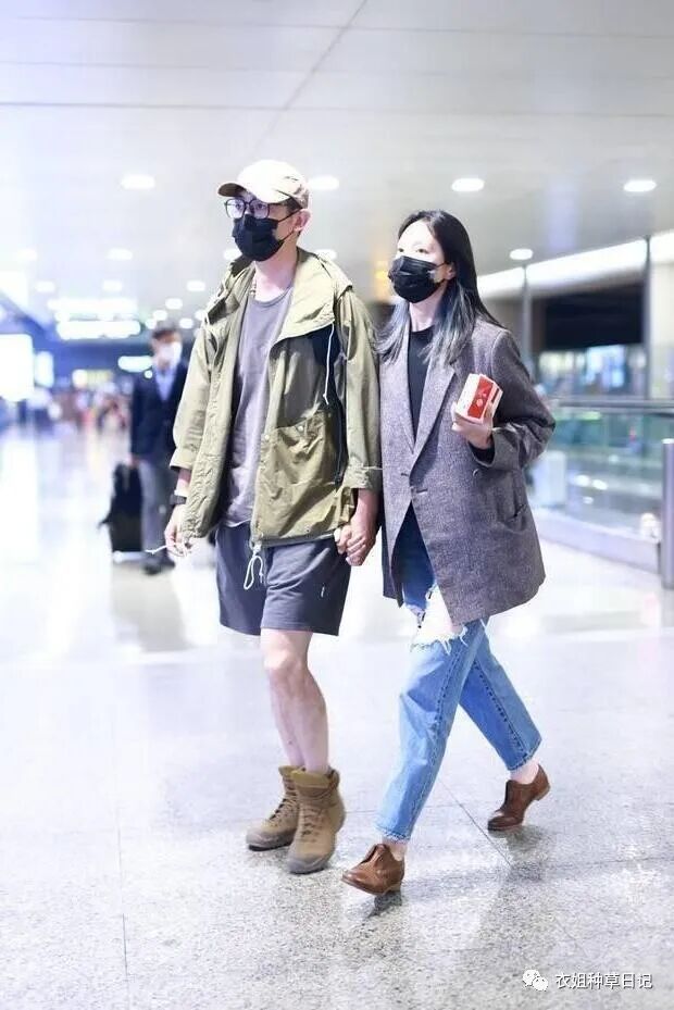 如果喜欢深色系西装外套,又担心颜色深沉过于呆板的,不妨学习一下沈佳妮,购入一件花灰色西装,还能在颜色上满足显瘦的需求。