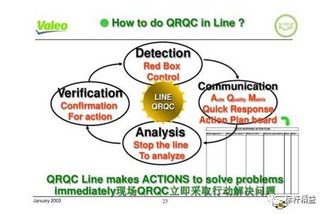 James清了清嗓子,两手伸出做了个安静的动作。“不要慌,大家想想现在我们可以做些什么?”Rick也站了起来不慌不忙地说:“现在正是用到我们精益质量中的第三大法宝QRQC的时候了,快速反馈,快速纠正。这个法宝啊,上次来你们公司不是都有培训过吗?现在刚好用用。”在征得James同意后,Tommy先把XR1的结绳线先停了下来。