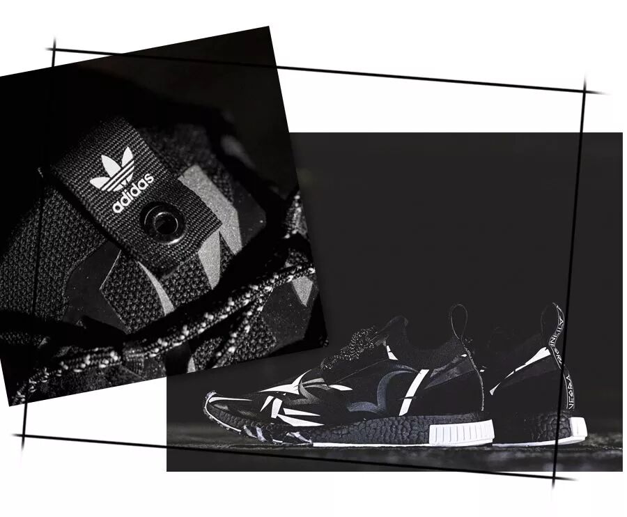 NMD的稳定块加上NBHD的字样,鞋面则加入虎牙纹路。全黑配色,感觉更潮更型更酷!▼
