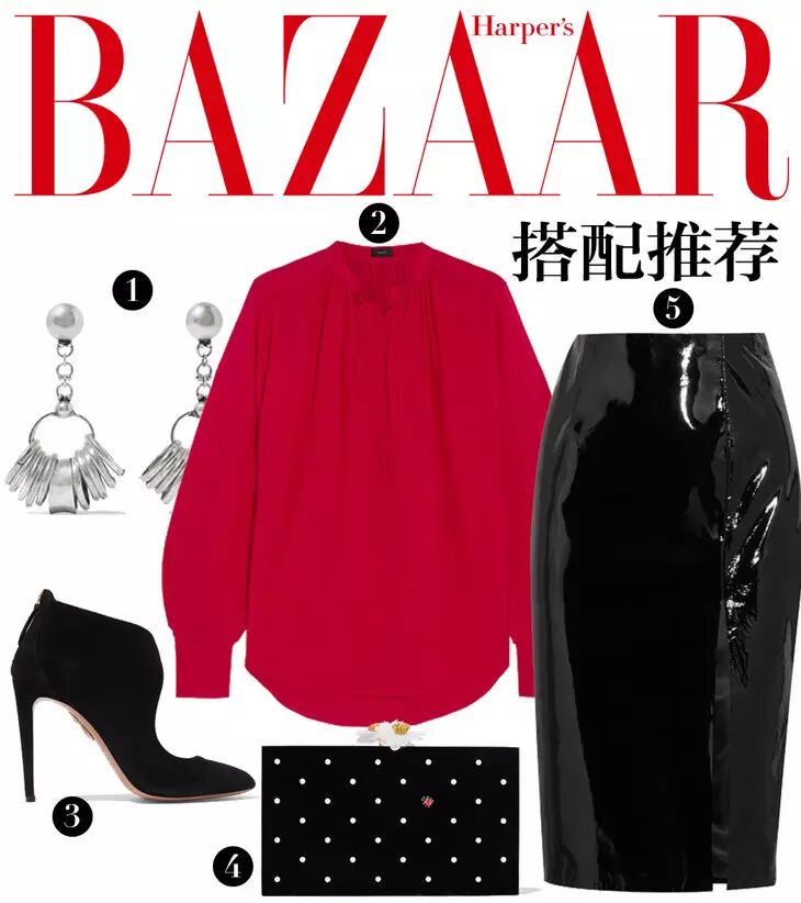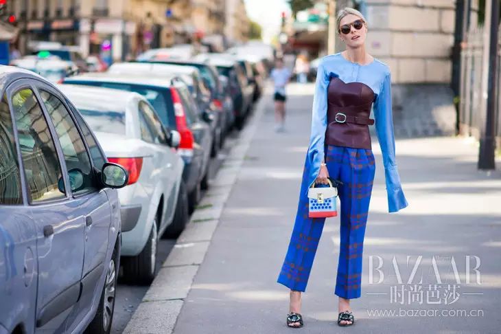 丝质衬衫本就十分具有睡衣感,超长袖更是显出不羁,皮革裹胸拗出身材,红蓝撞色搭配想不时髦都难!