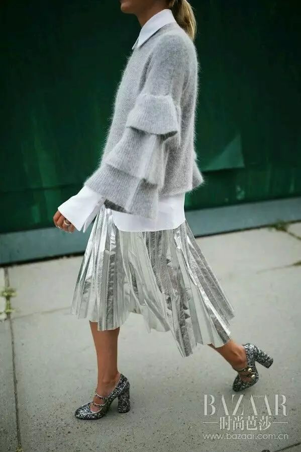 选择柔软质感的面料喇叭袖毛衣更添一份柔情,层层叠搭设计更是吸引眼球,搭配裙装配玛丽珍鞋将优雅进行到底。