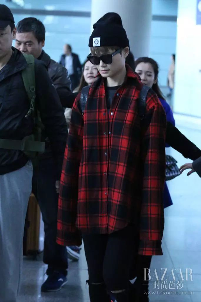 春春的造型越来越有个人的独特风格,最近出现在机场的她也穿上了超长袖格子衬衫搭配双肩包,简单的休闲Look也变的酷感十足。
