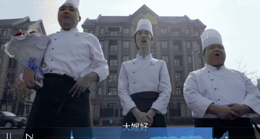 三个厨师90度鞠躬喊大嫂,哈哈哈这辈分可真是乱了套了。