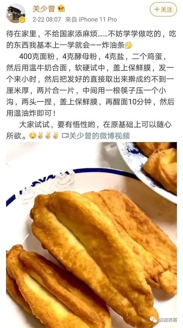 第二天,关晓彤的父亲一大清早,就发了一条怎么做油条的博文。