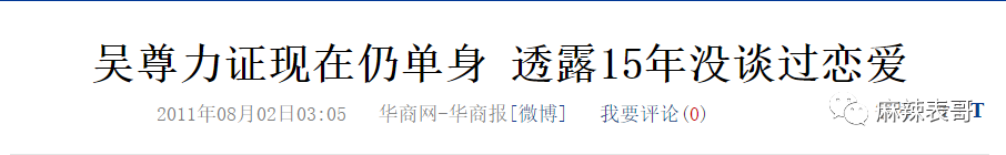 2011年8月,吴尊对外说自己清者自清,已经15年都没有谈过恋爱。