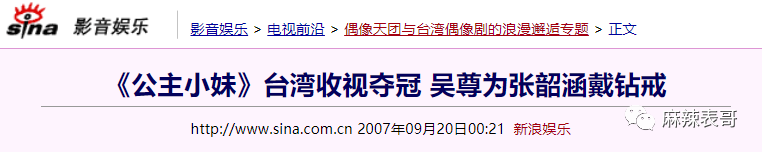 2007,吴尊和张韶涵的《公主小妹》开播,连续十三周拿下了收视冠军。