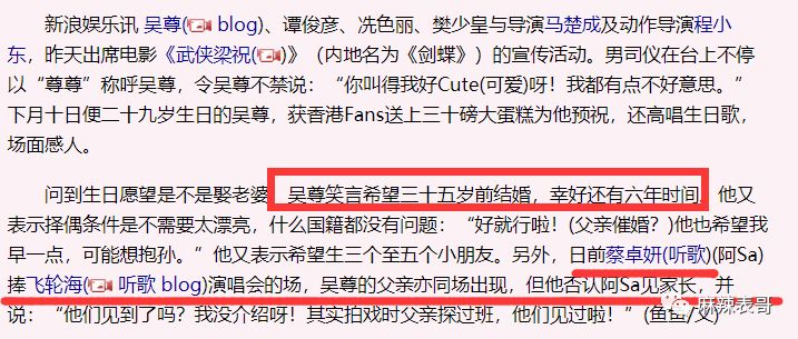 但他对外不这样说,对外他依旧说“我也希望在35岁前结婚”。