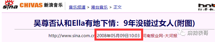 更有趣的是,ella这条新闻出来后3天,也就是2008年5月9日,就出来了一条关于吴尊的新闻。