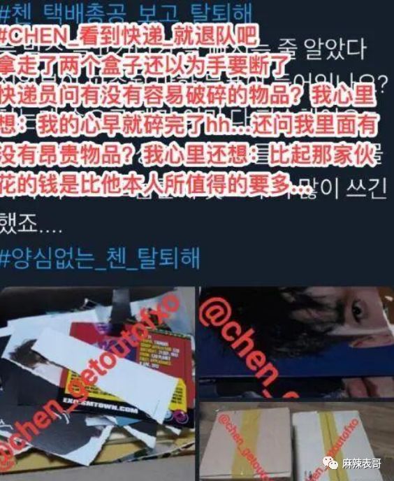 粉丝直接把周边邮寄给了SM公司,在箱子上面写了抵制金钟大的文字。