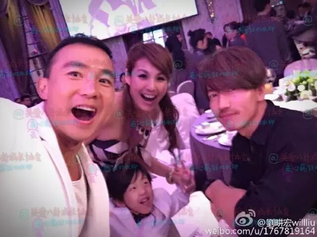 再看看另一张王婉霏与萧亚轩的合影,背后穿红色礼服的好像是林志玲,但是认不出哪个是言承旭啊。