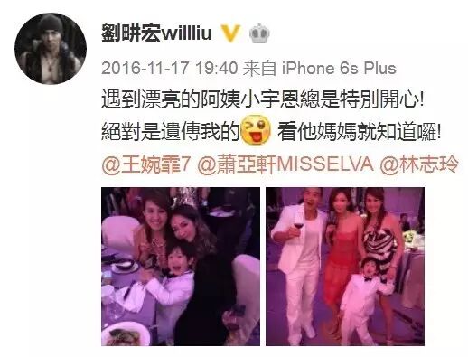 配了两张刘畊宏全家分别与林志玲和言承旭的合影